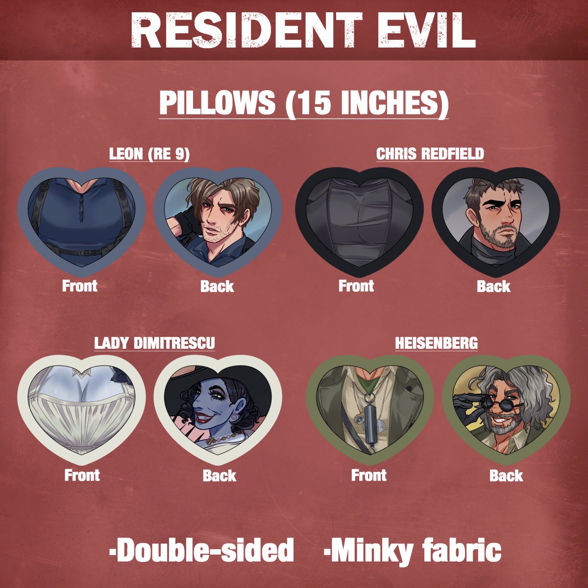 Plush, minky pillows featuring some of the cast of various Resident Evil games.